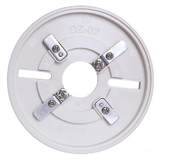 底座上有4個(gè)導(dǎo)體片,片上帶接線端子,底座上不設(shè)定位卡,便于調(diào)整探測(cè)器報(bào)警指示燈的方向。預(yù)埋管內(nèi)的探測(cè)器總線分別接在任意對(duì)角的二個(gè)接線端子上(不分極性),另一對(duì)導(dǎo)體片用來(lái)輔助固定探測(cè)器。